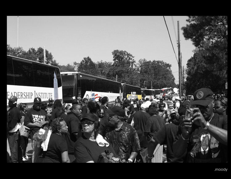 This photograph documents the Jena Six protests in 2007, a pivotal moment in civil rights activism. The case involved six Black teenagers from Jena, Louisiana charged with attempted murder following a school altercation that occurred amid documented racial tensions, including the placement of nooses at the school. The severity of charges against the teenagers, perceived as disproportionate compared to similar incidents involving white students, sparked national outrage and raised concerns about systemic racial injustice within the criminal justice system.