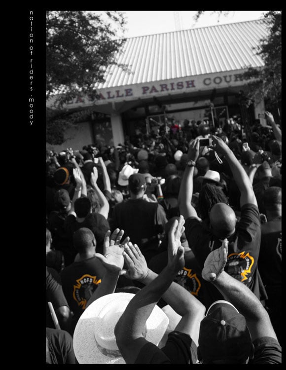 The density of the crowd and the visible media documentation reflect how the Jena Six movement mobilized mass participation as a strategy of accountability. By bringing thousands of bodies to Jena, protesters made visible the national stakes of the case and the moral weight of collective opposition to perceived injustice. The courthouse setting emphasizes that while legal proceedings operate through formal institutional mechanisms, they occur within broader social and political contexts shaped by organized movements capable of exerting pressure and demanding transparency.
